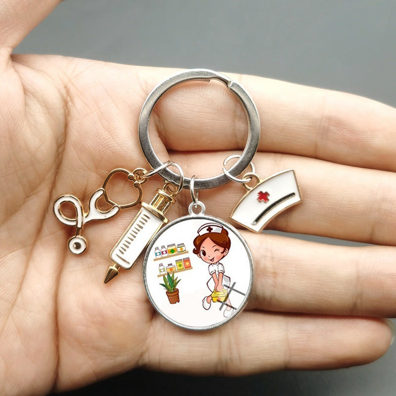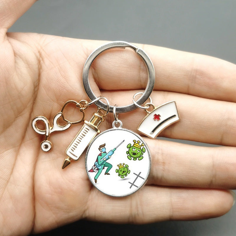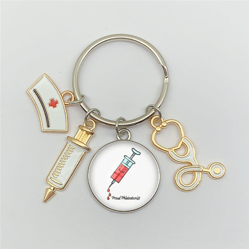 Injector Stethoscope Nurse Key Chain Doctor Nurse Key Ring Gift Cross Border